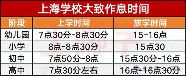 关于这个问题,确实每年都有家长在问,给大家整理了一下,上海幼小初高大致作息时间是这样的: